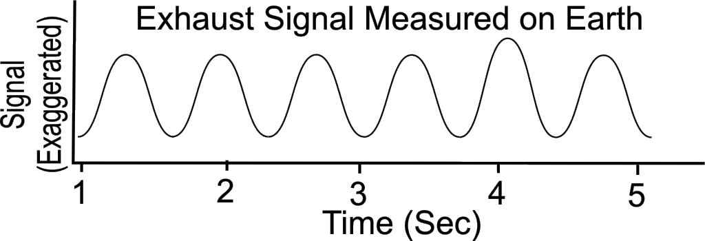 The answer is that the Finger's rotation (and imperfect engine alignment) caused her exhaust signal to pulse, like this: